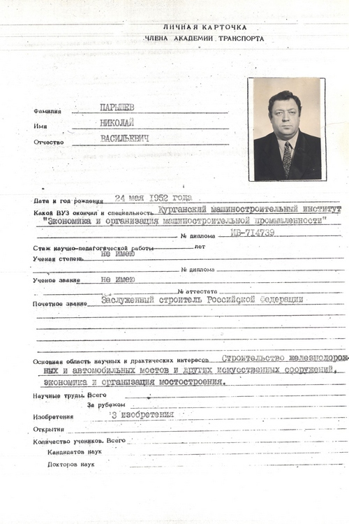 Н.В.Парышев в начале своей трудовой деятельности на заводе стальных мостовых конструкций (ныне Курганстальмост)