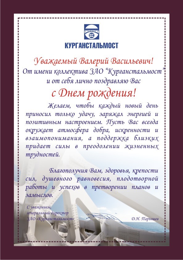 Поздравление Доктору транспорта, действительному члену РАТ, генеральному директору ООО «Мостпроект» Моисееву О.Ю.